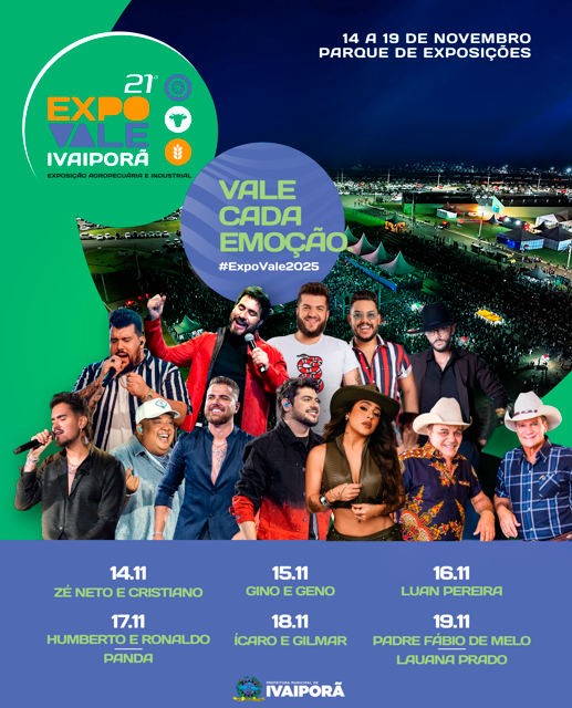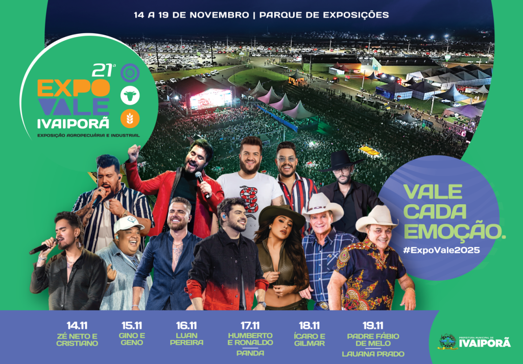 “Há 21 anos, a Expovale valoriza o agro, a indústria e o comércio regional, consolidando Ivaiporã como referência em negócios, inovação e turismo. O evento cresce a cada edição, gera empregos, movimenta a economia e reforça o orgulho do Vale do Ivaí. Em 2025, a expectativa é ainda maior, com mais expositores, tecnologia e participação popular.”